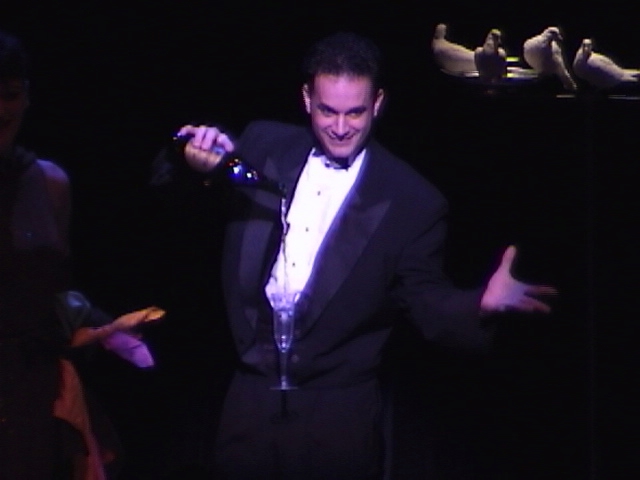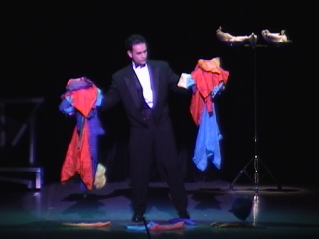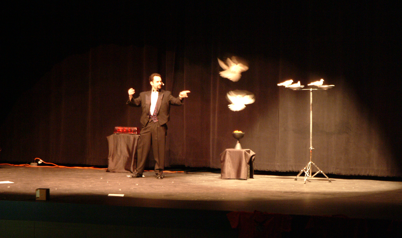 In a flash of fire Jason vanishes from stage and surprises the entire audience when he is behind them. |