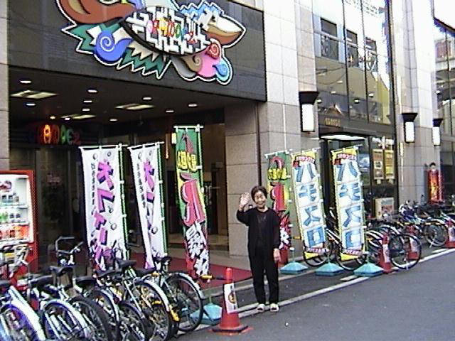Jason 2000/01 outside the theater again with on of the billboards. Look closely at the bottom left corner, and you can see Jason's picture. |