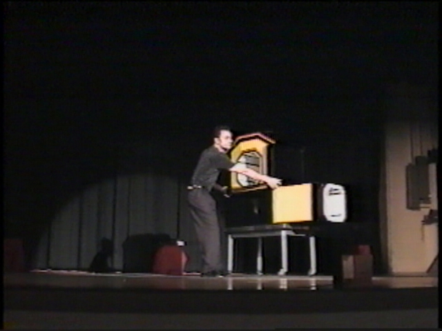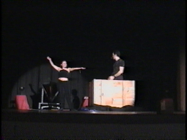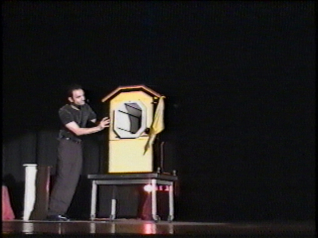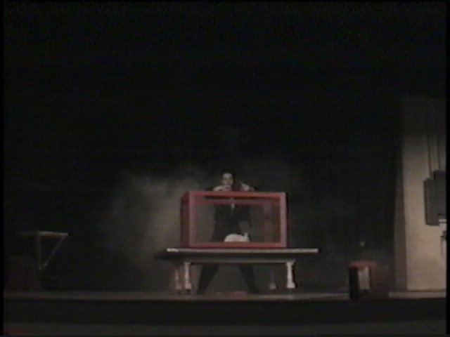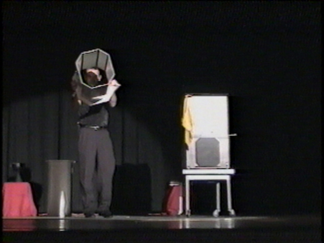As if the tubes and a blade are not enough, Jason then removes the bottom of the box. The audience can now see through the tubes, AND the vacant space where the assistan's body was. Is she invisible? |